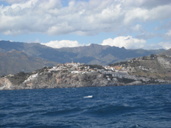 The picture is of Punta de la Concepcion between Caleta de Velez and Motril and by now the sea is giving us an quite an exiting ride. Once again it strengthens throughout the day and passing between the breakwaters as we enter the harbour was something of a relief.