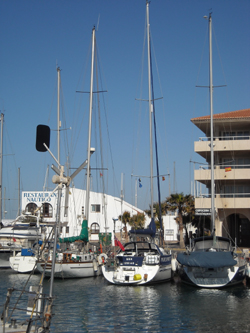 Pure Spirit and Allegresse alongside a hammerhead at the Real Club Nautico de Motril. 42 Euros each for the night and we only used the one berth!!!