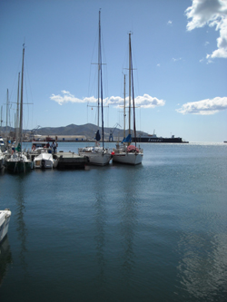 More westerly wind and we reach the harbour of Caleta de Velez in the late afternoon. Its a mix of fishing boats and a marina for pleasure craft that looks pretty full. Having being completely ignored on VHF CH9, 10(well thats what it said in my pilotage book) and 16 Pure Spirit goes alongside the fishing quay with Allegresse rafted outside
